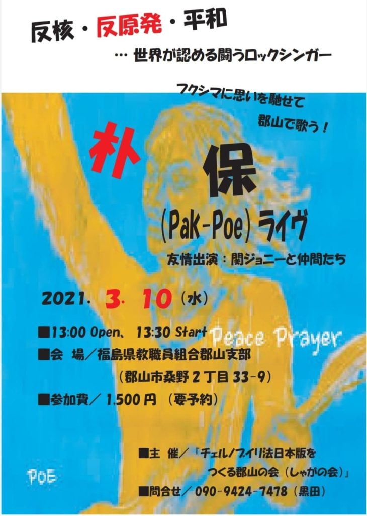 3月10日(水)フクシマに思いを馳せて郡山で歌う!