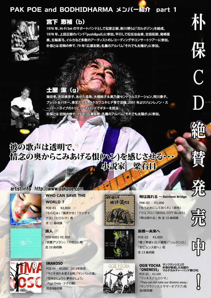 それから朴保の新バンド、ボーディダルマを率いてのスペシャル1stライブ!