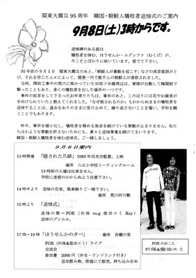 関東大震災95周年 韓国・朝鮮人犠牲者追悼集会(荒川河川敷)