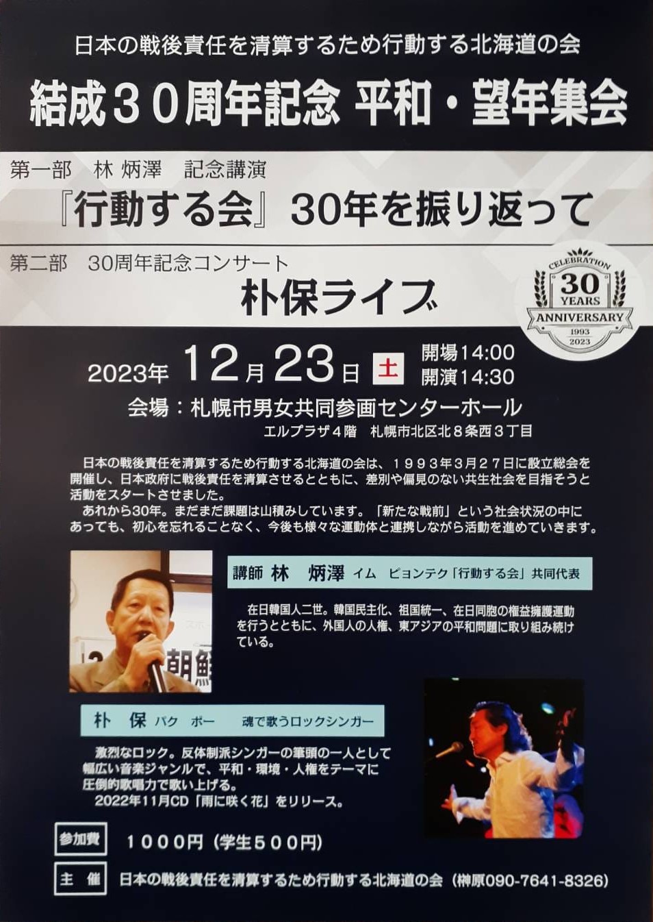 12月23日(土) 行動する会結成30周年記念 平和・望年集会