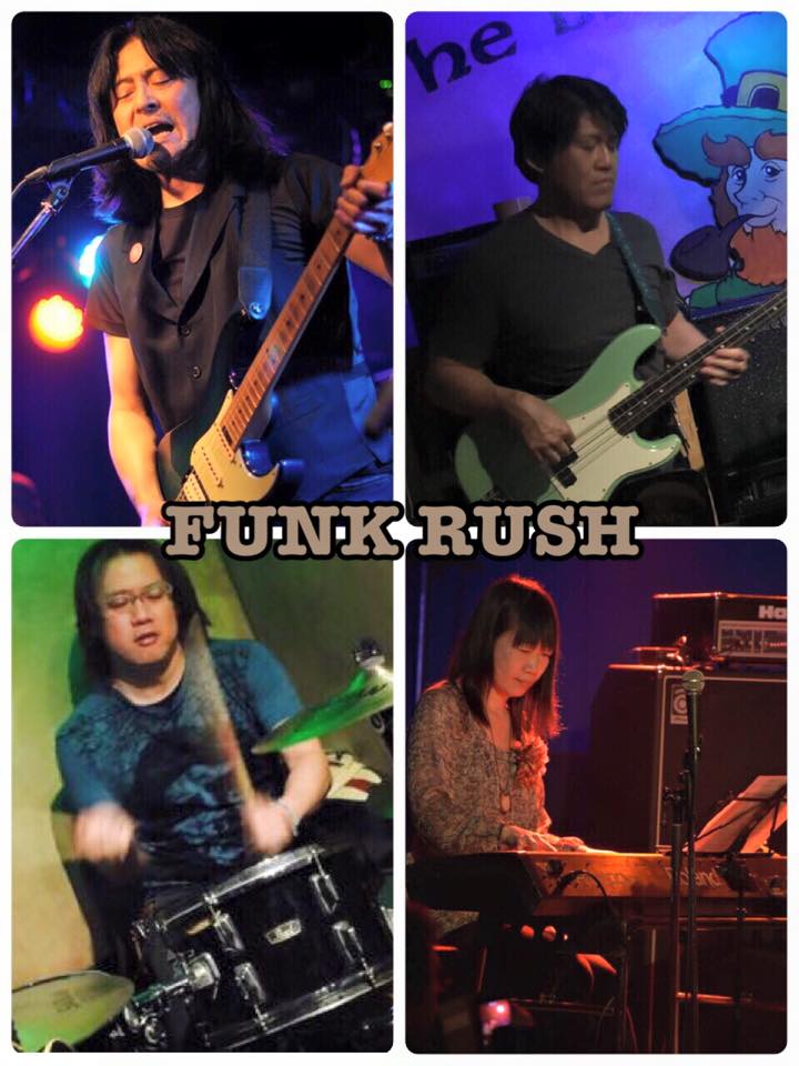 FUNK RUSH:ツーさん.安達嗣雄(vo,g) 井上勲(b) 西秀和(d) 大谷朝子(key)